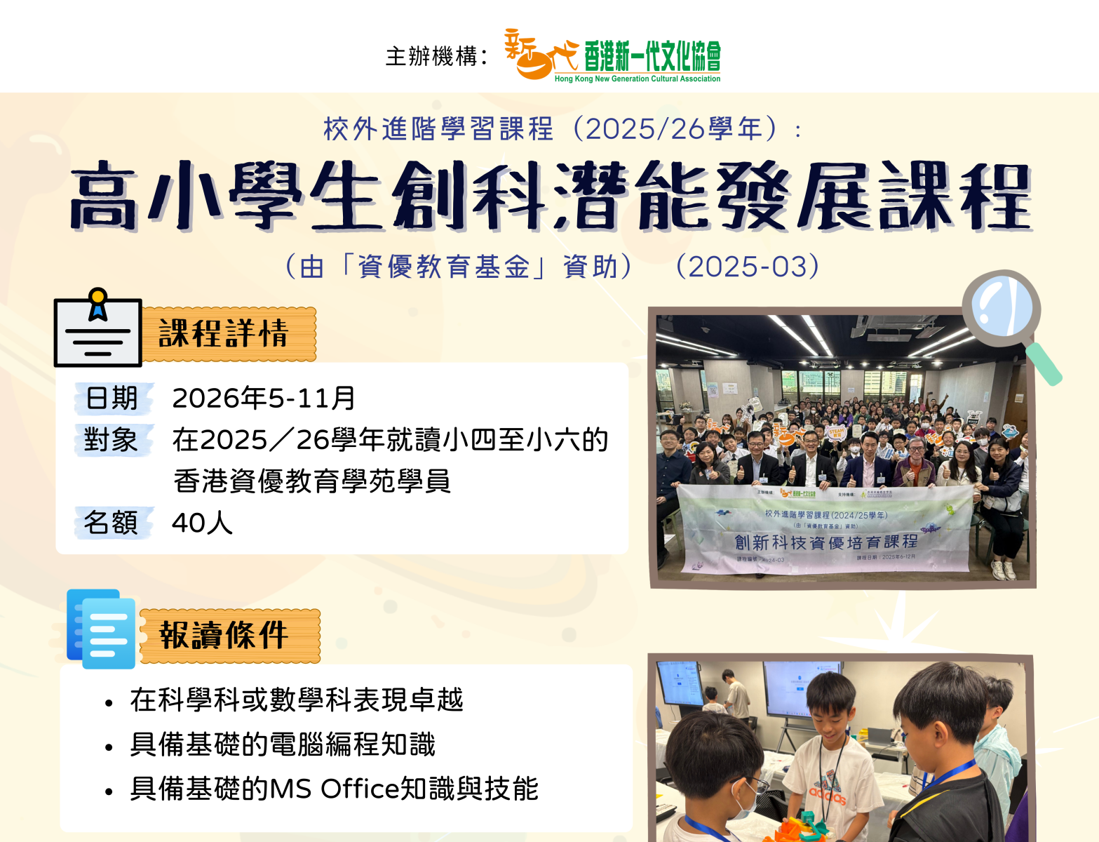 參加對象 : 於2024-25學年為小四至小六的香港資優教育學苑學員
